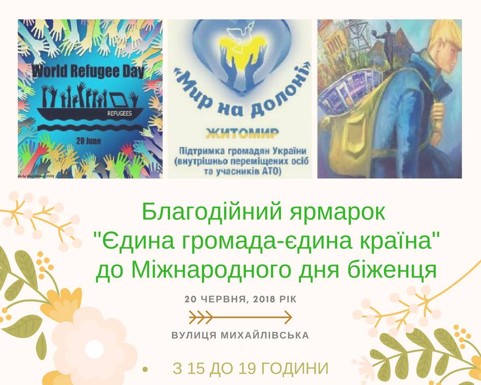 Захід до Міжнародного дня біженця проведе громадська організація «Союз переселенців «Мир на долоні» за підтримки Управління культури Житомирської міської ради.