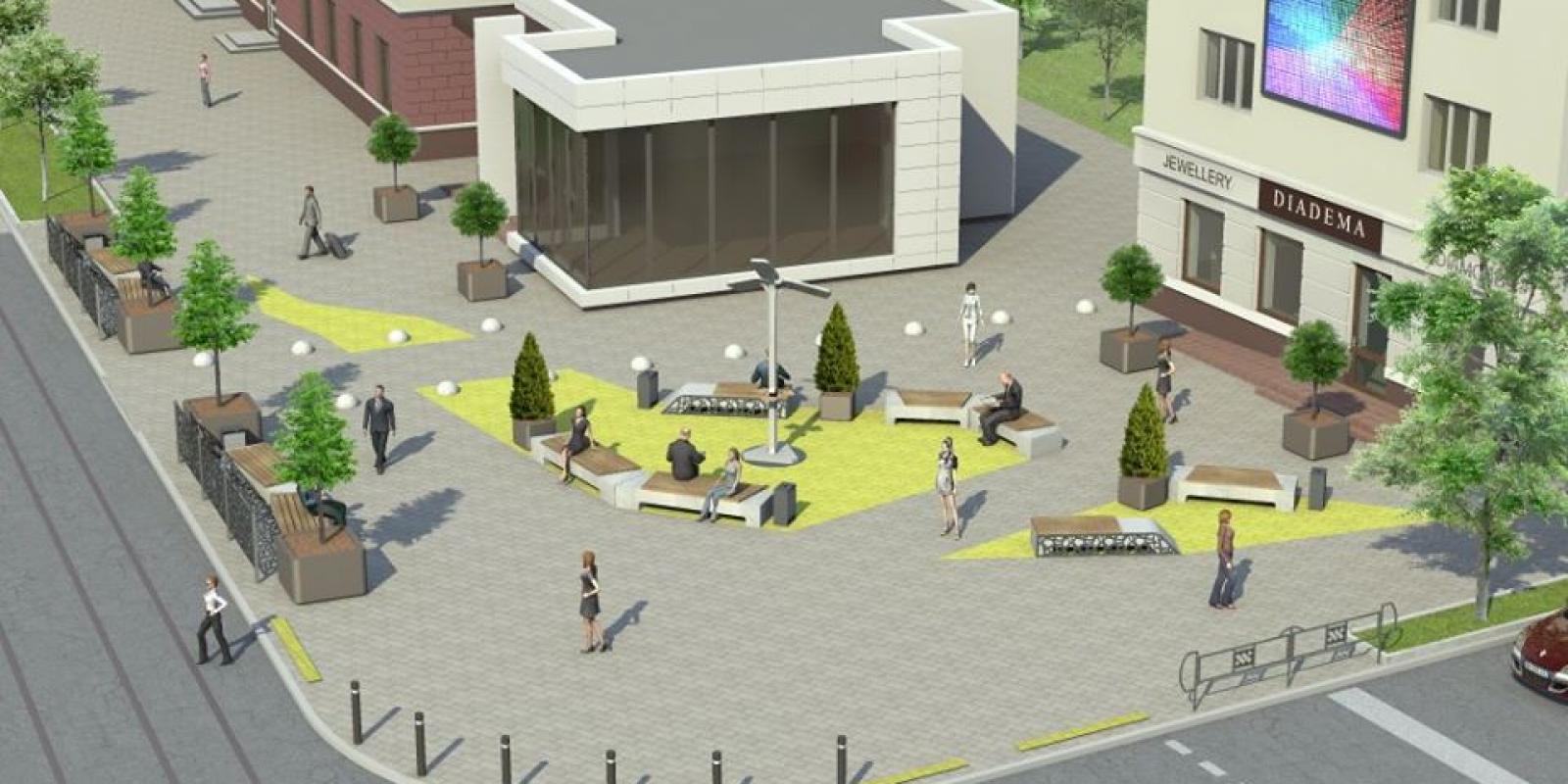 «Вот такой предварительный эскиз от архитектора Сергей Кручко по созданию небольшого общественного пространства на углу Киевской и Небесной Сотни.