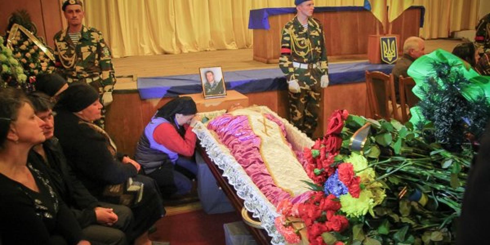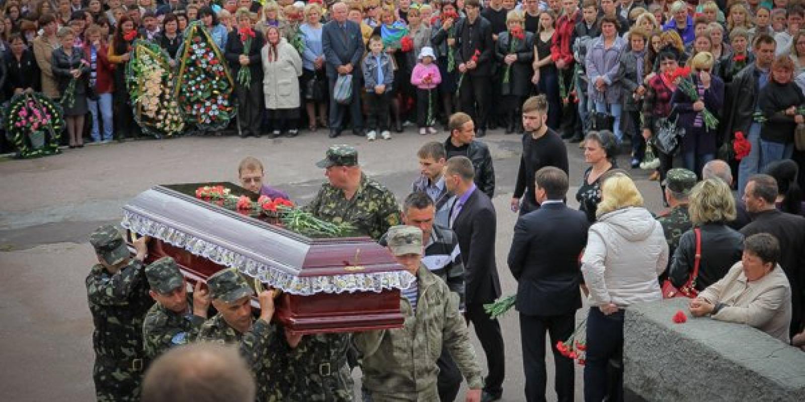 Труни із тілами загиблих чекали півтори години і о 12.20 їх одна за одною почали заносити їх в у залу під крики "Герої не вмирають" та "Слава Героям України". Дехто кидав квіти прямо на закриті труни, слідом за якими йшли вдови, діти та батьки загиблих.