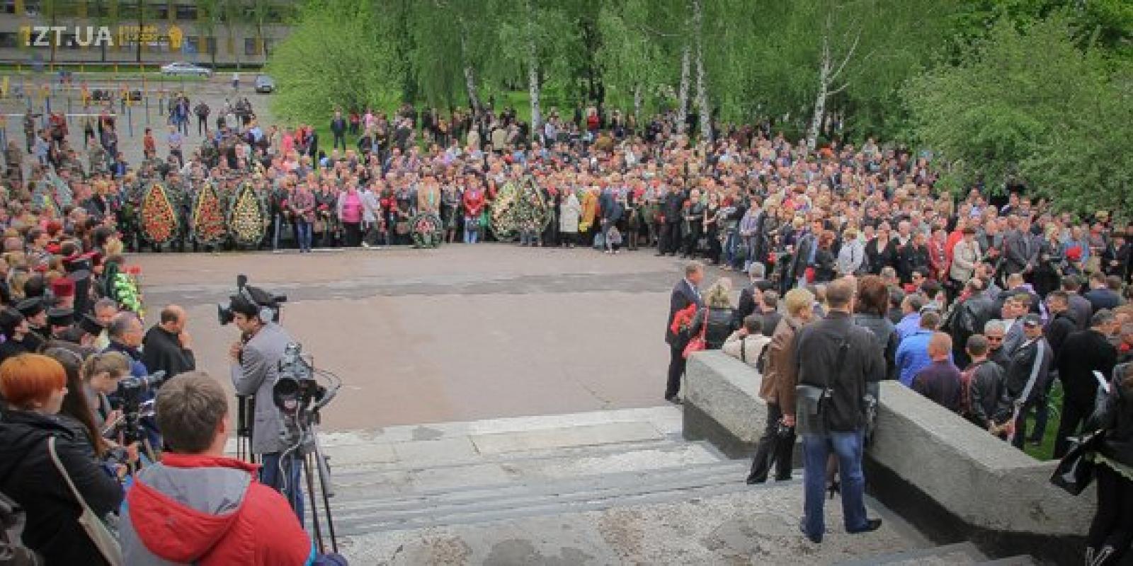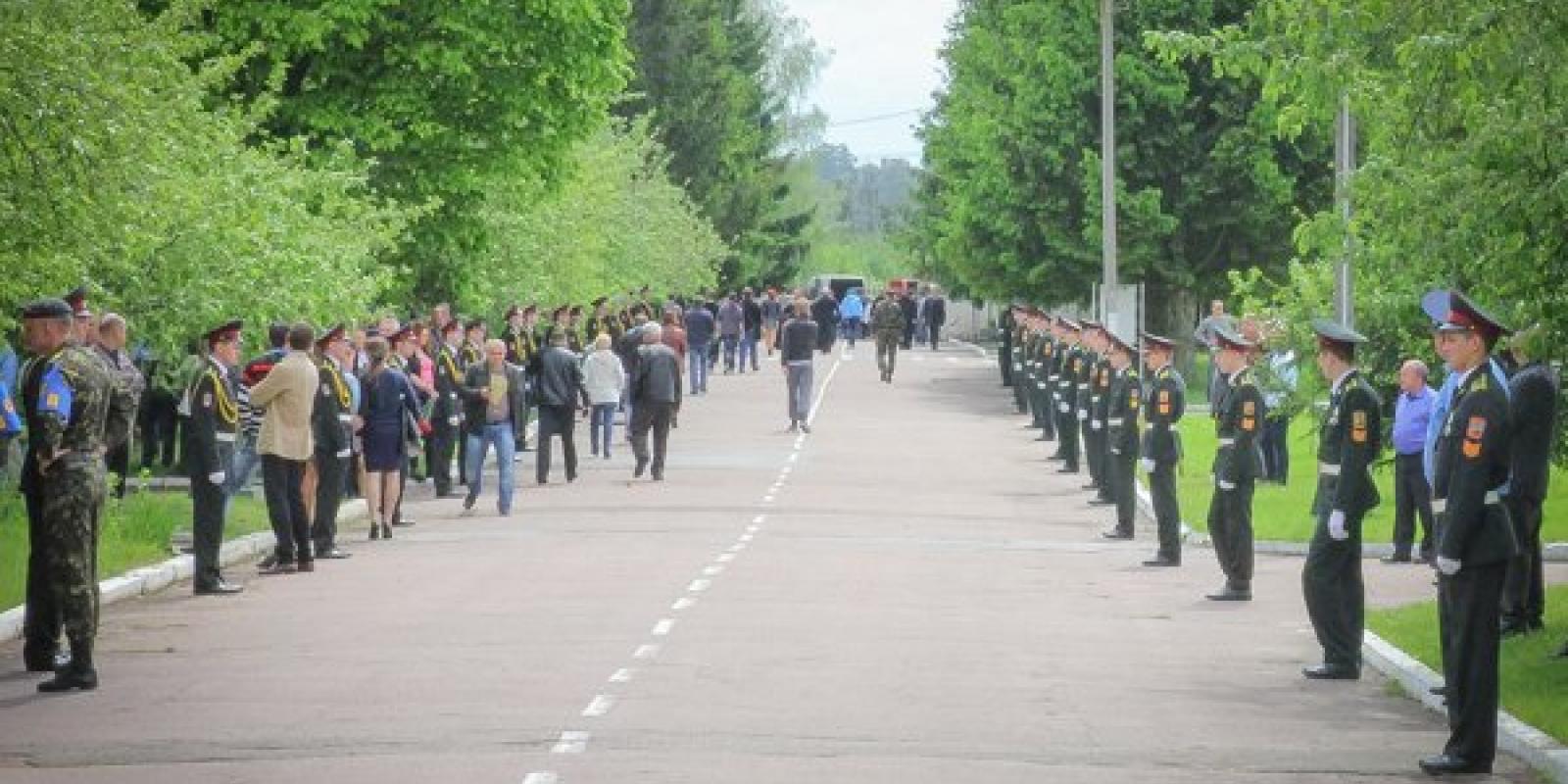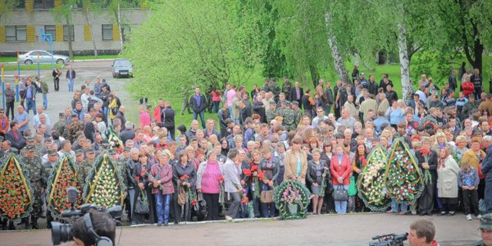 Житомиряни 16 травня на території військової частини прощалися із трьома десантниками 95 аеромобільної бригади, які загинули під час виконання службових обов'язків під Краматорськом 13 травня.