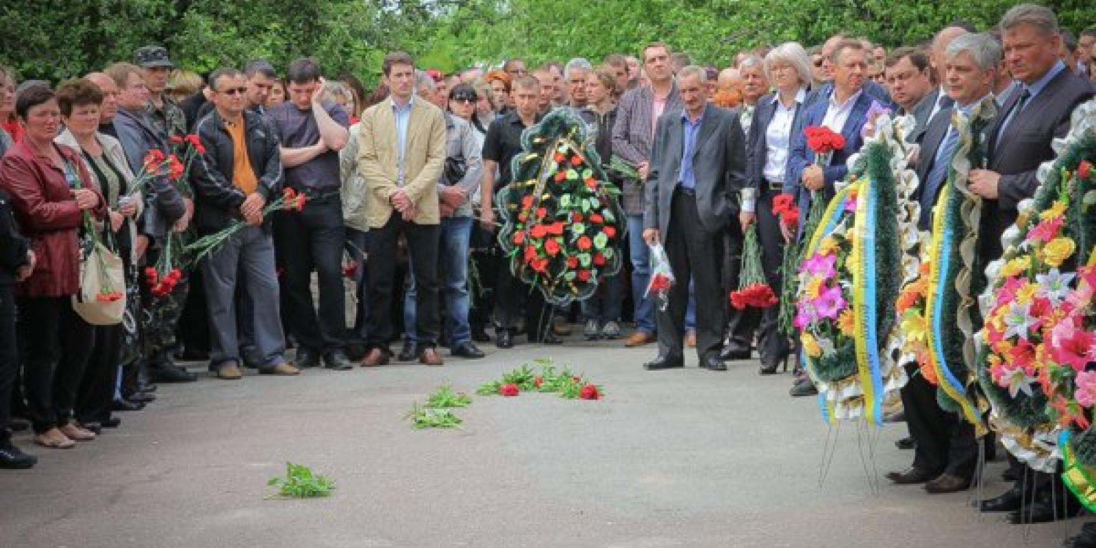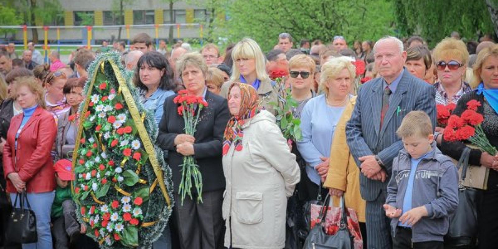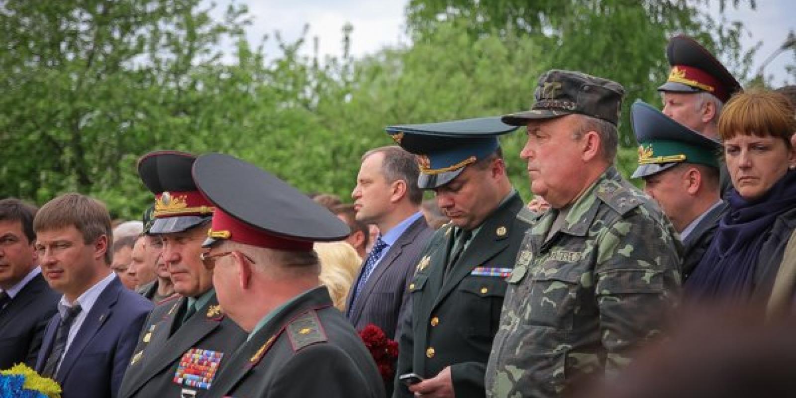 Житомиряни 16 травня на території військової частини прощалися із трьома десантниками 95 аеромобільної бригади, які загинули під час виконання службових обов'язків під Краматорськом 13 травня.