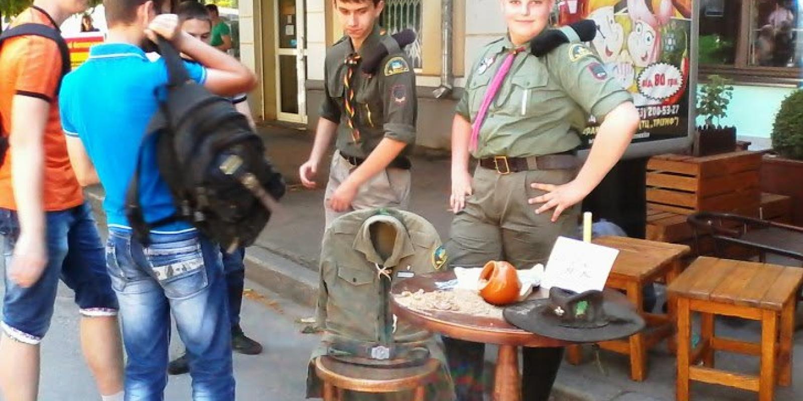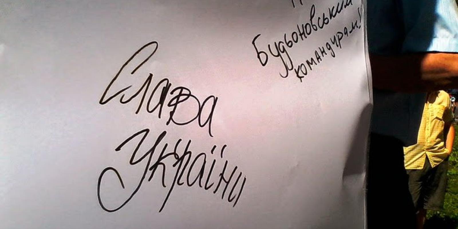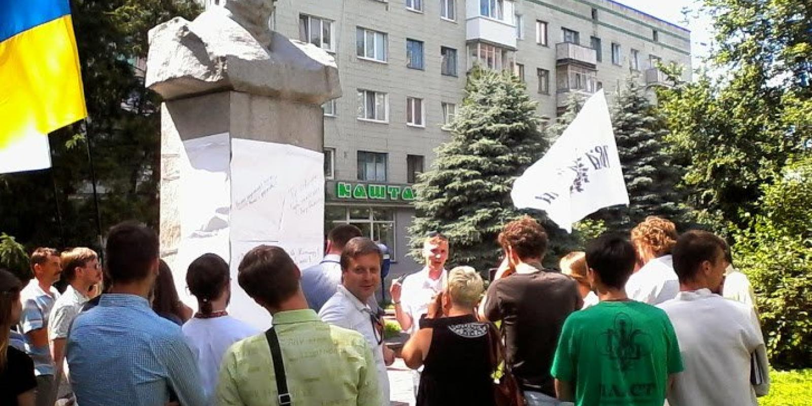На місці, де вже мав би стояти пам'ятник поету, але поки там пам'ятник будьоновцю Пархоменку, активісти провели невеличкий флеш-моб.
