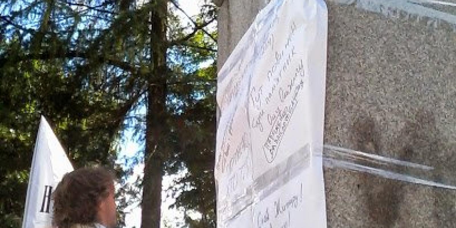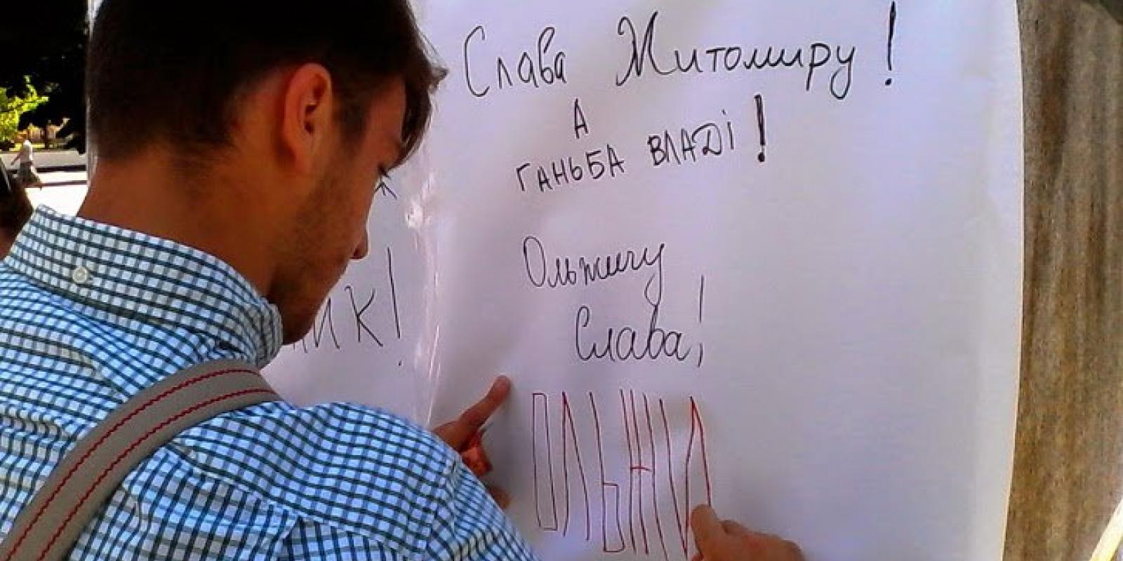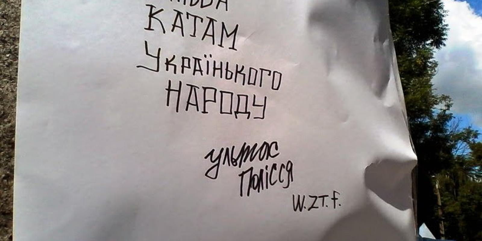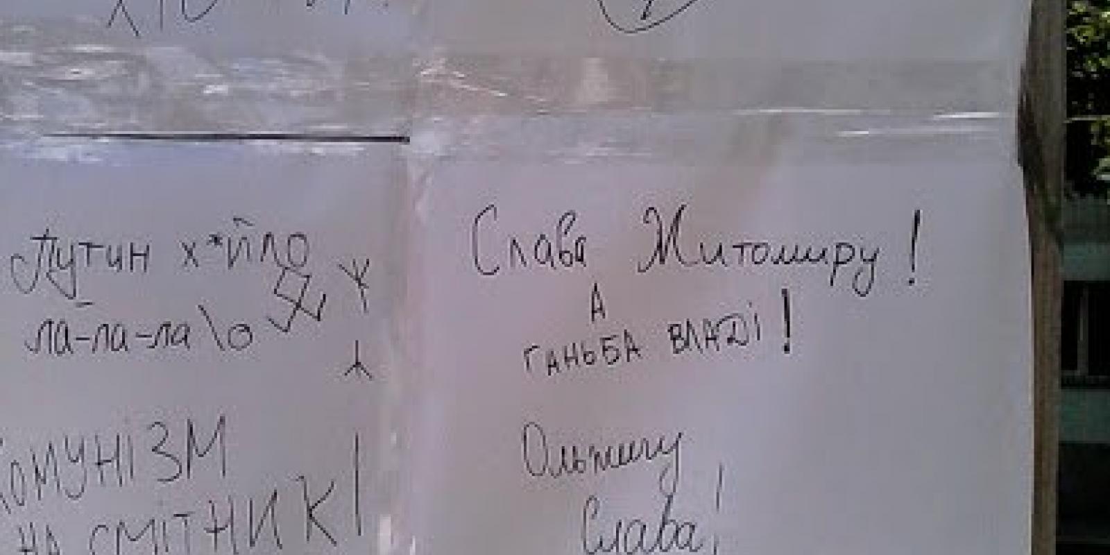 Теперішній постамент з Пархоменком вони обнесли ватманами, щоб кожен написав що він думає з приводу ситуації навколо "вшанування" житомирською владою свого земляка.