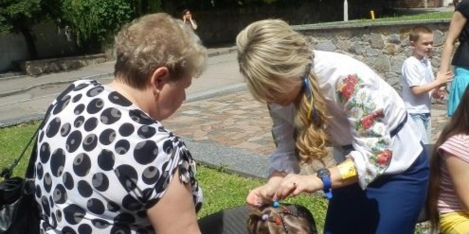 Проте головною родзинкою свята було встановлення рекорду з найбільшої кількості людей із жовто-блакитними стрічками у волоссі та 3D малюнок. Робота над малюнком триває, і повну картинку можна буде побачити завтра зранку.
