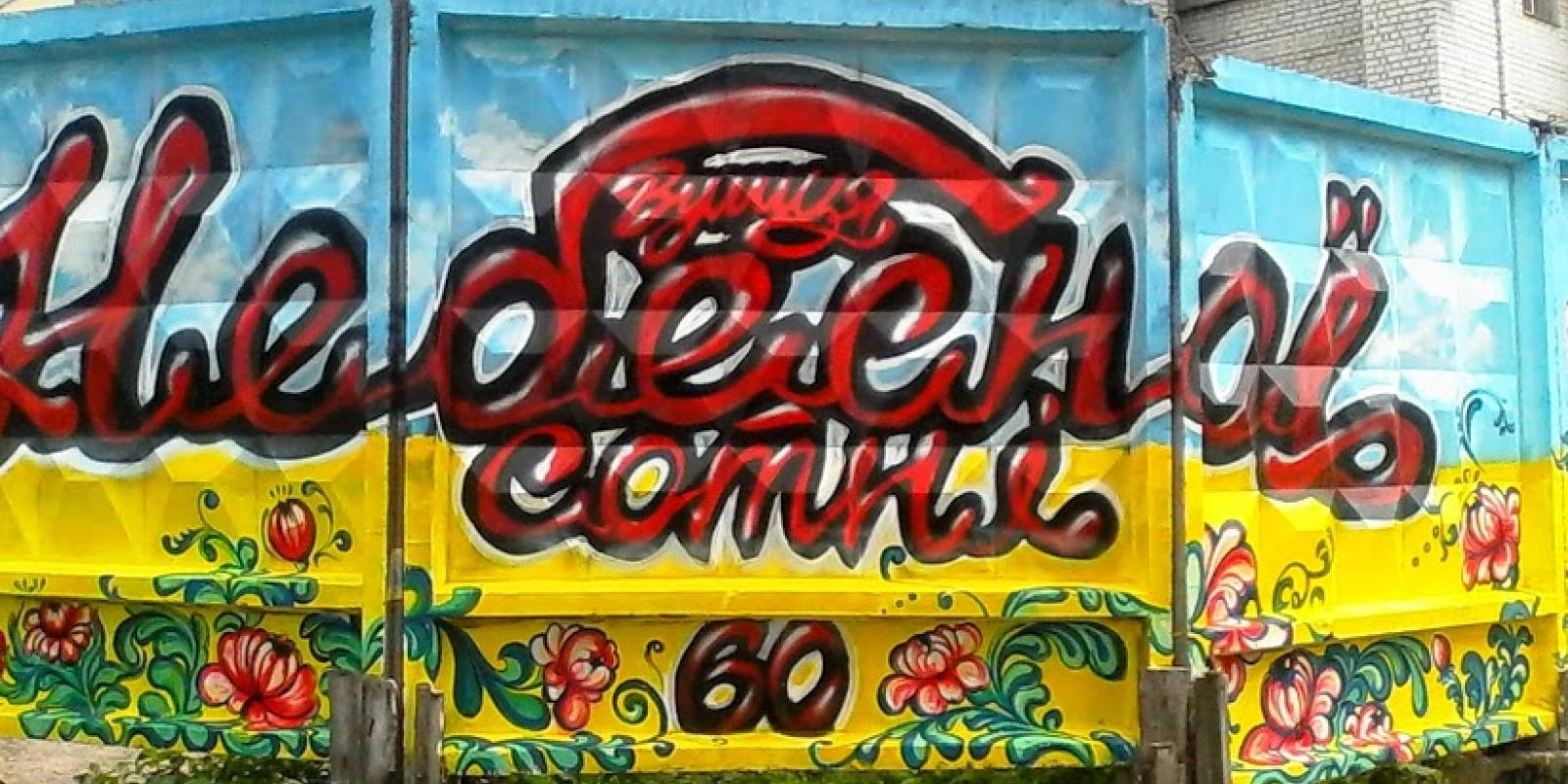 Тепер житомиряни взялися гарно пронумерувати свої вулиці. Так дівчина Даша зі своєю сестричкою та другом-графітчиком розмалювали паркан по вул. Небесної сотні, 60.