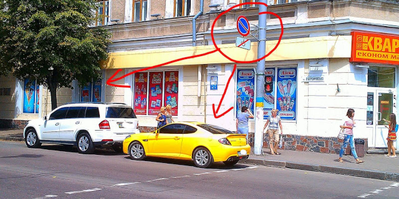 "Привiт" вже вкотре водiї передають депутату мicької ради, вiдомому юристу Олегу Гораю, що полюбляє на пiвдня залишити свiй жовтий Hyundai прямо пiд знаком 3.35. "Стоянку заборонено" бiля супермаркету на Бердичiвськiй. Щоправда, цього разу вiн припаркувався там не сам, а "солодкою парочкою" з бiлим Мерседесом депутата Пухтаєвича. Вiдповiдно до правил, там дозволено паркуватися лише водіям-інвалідам, що керують мотоколяскою або автомобілем, позначеними розпізнавальним знаком «Інвалід».