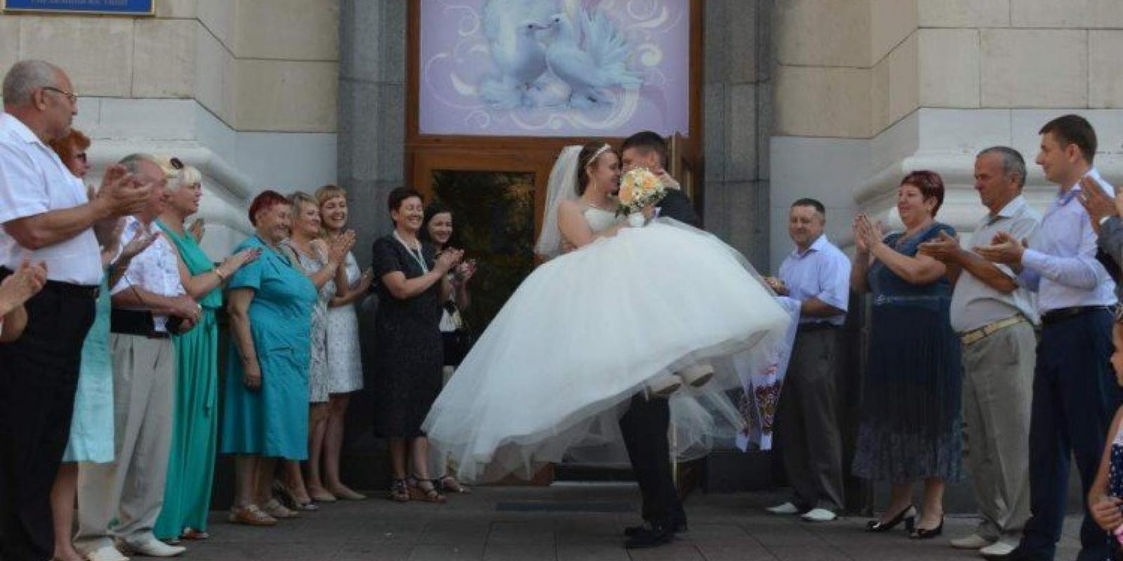 Вікторія та Ярослав познайомились ще у школі, зустрічатись почали в 9 класі. Сьогодні їм вже по 21 і урочисто при свідках та рідних пару оголошують чоловіком та дружиною. Дивлячись у вічі, вони обіцяють бути підтримкою один одному та любити до кінця життя.