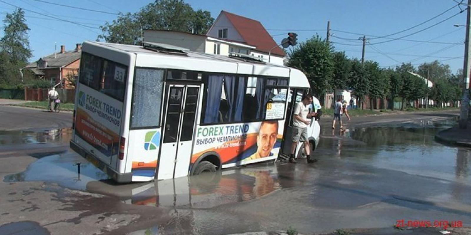 2 серпня в Житомирі на перехресті вулиць Шелушкова та Гоголівська маршрутка провалилася в яму. За попередніми даними, близько 15.30 маршрутне таксі № 33, рухаючись по вулиці Шелушкова у бік вулиці Шевченка, на перетині з вулицею Гоголівською провалилося заднім правим колесом в яму.