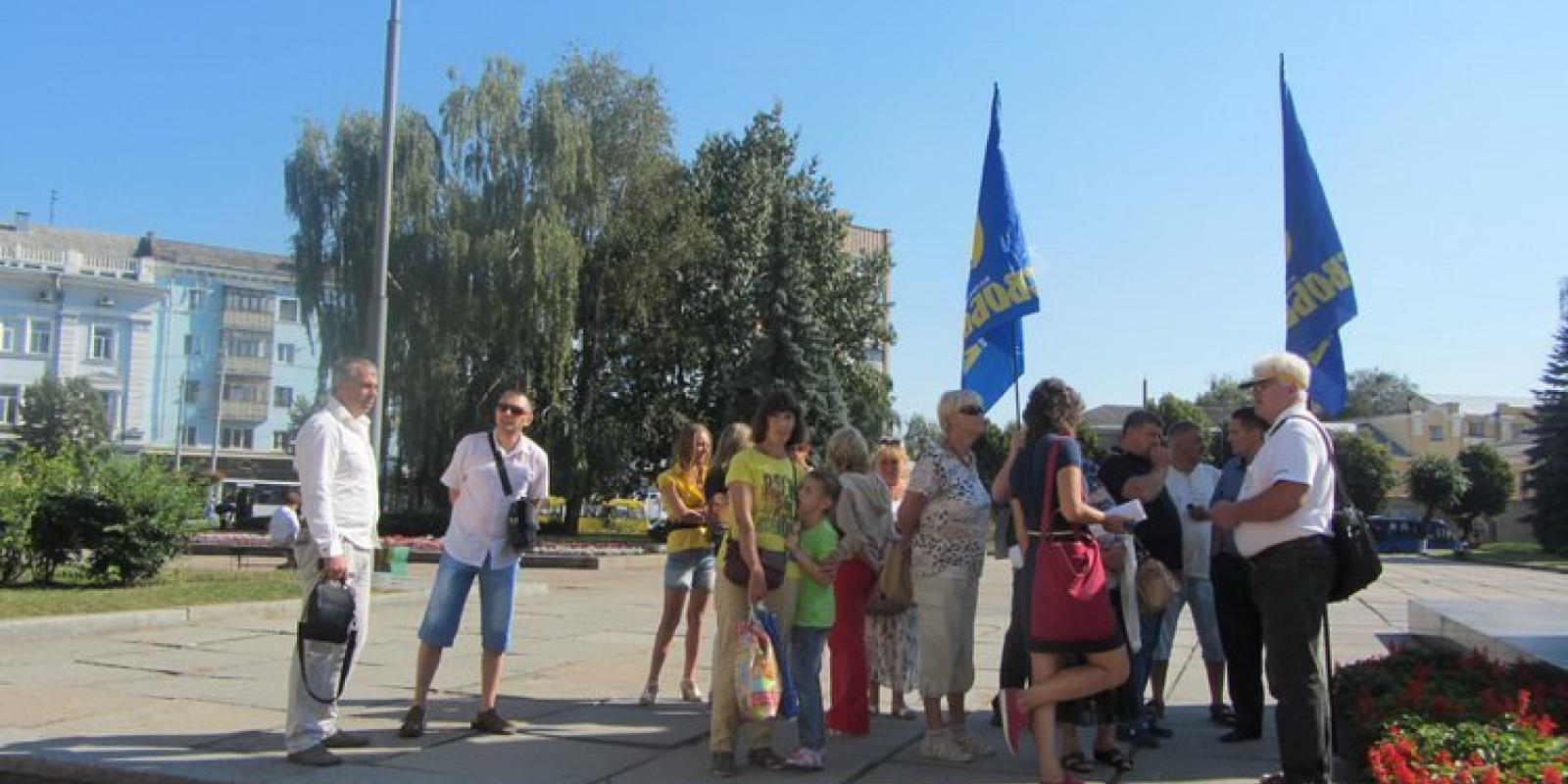 Зранку 18 серпня на майдані Корольова біля будівлі Житомирської облдержадміністрації зібралося близько двох десятків активістів.