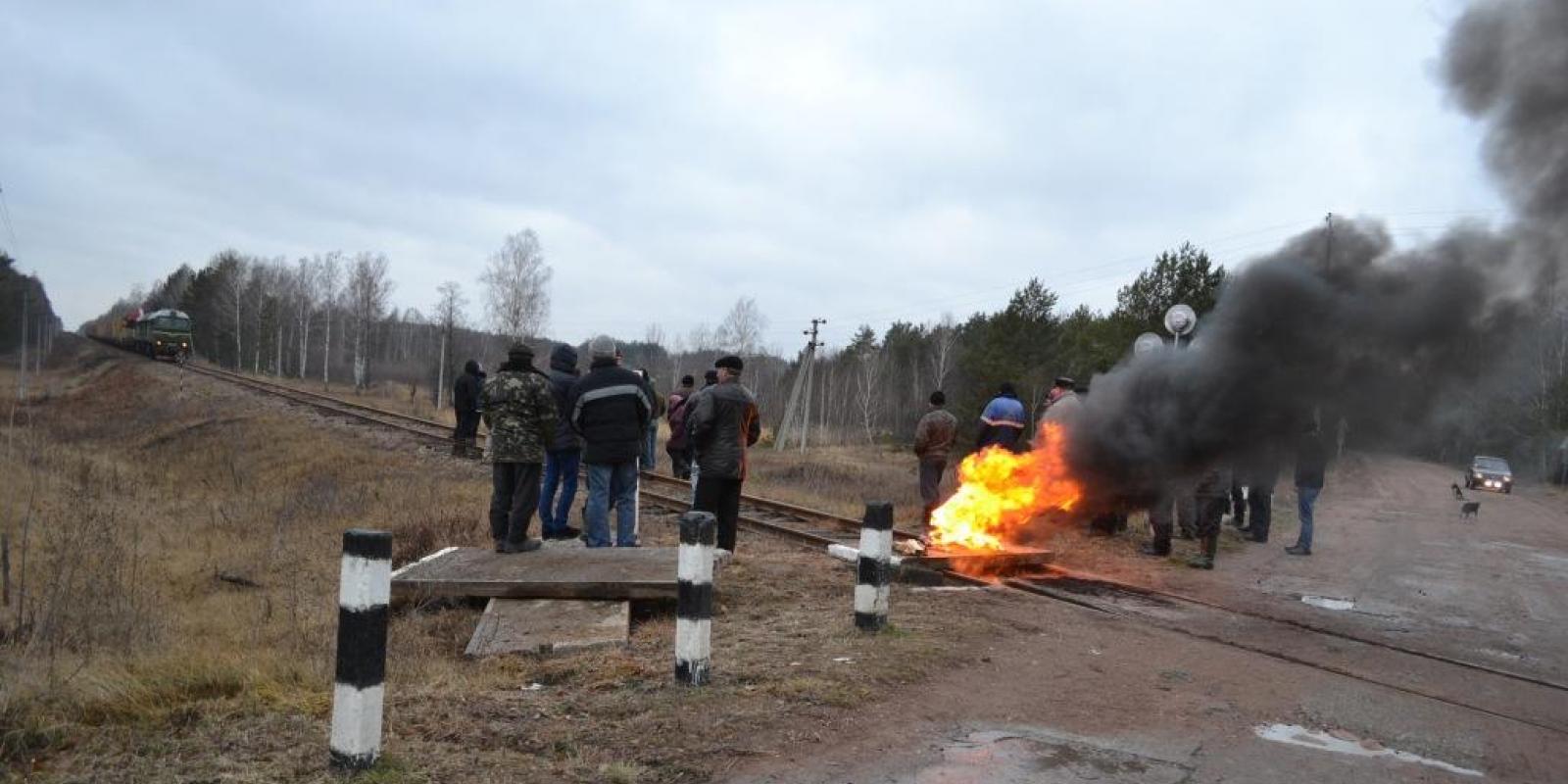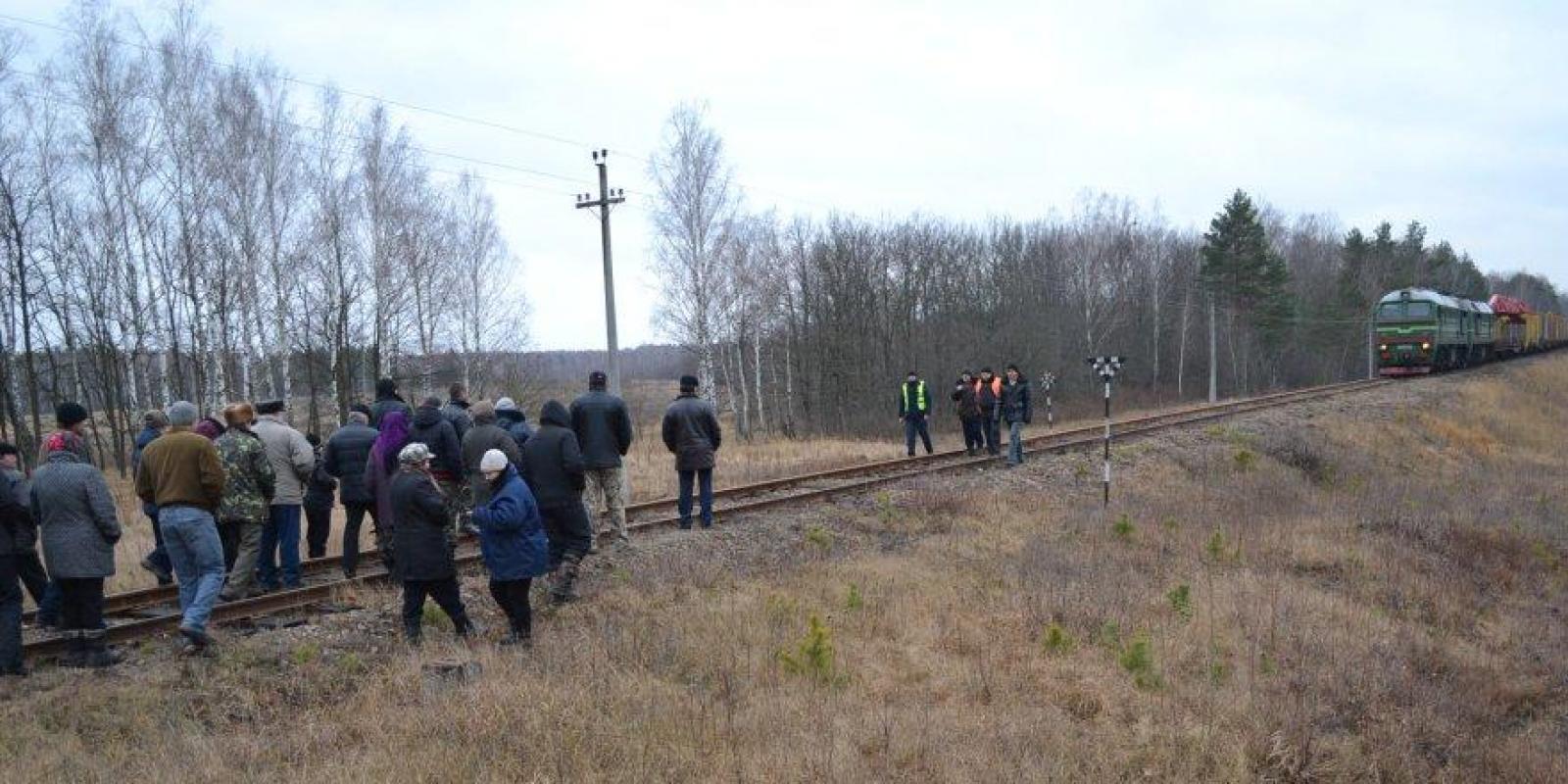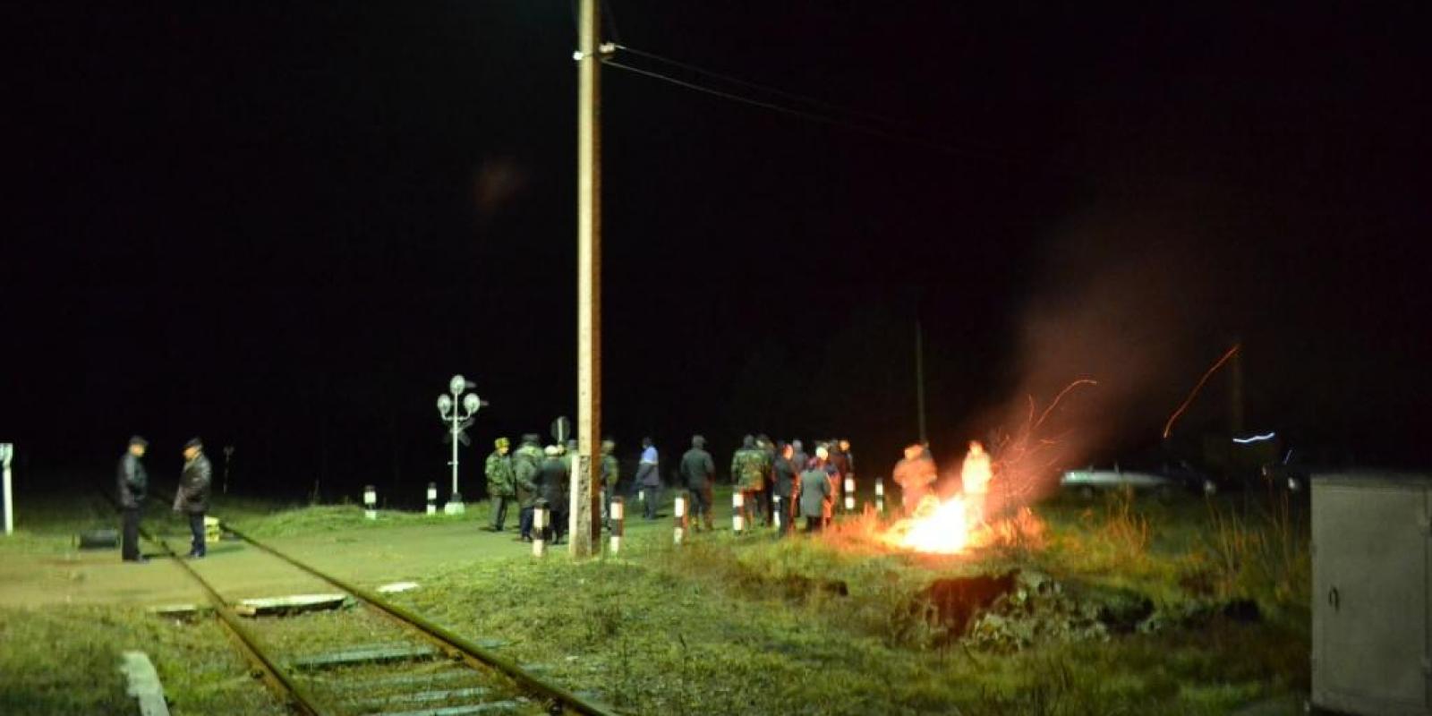 Згадавши досвід Майдану, привезли шини, розвели на колії багаття і стали чекати залізничників. Замість очікуваної 6-ої ранку тепловоз із відповідним краном для демонтажу і вантажними платформами до переїзду прибув близько 9-ої. Рішуче налаштований гурт людей змусив залізничників зупинити потяг.