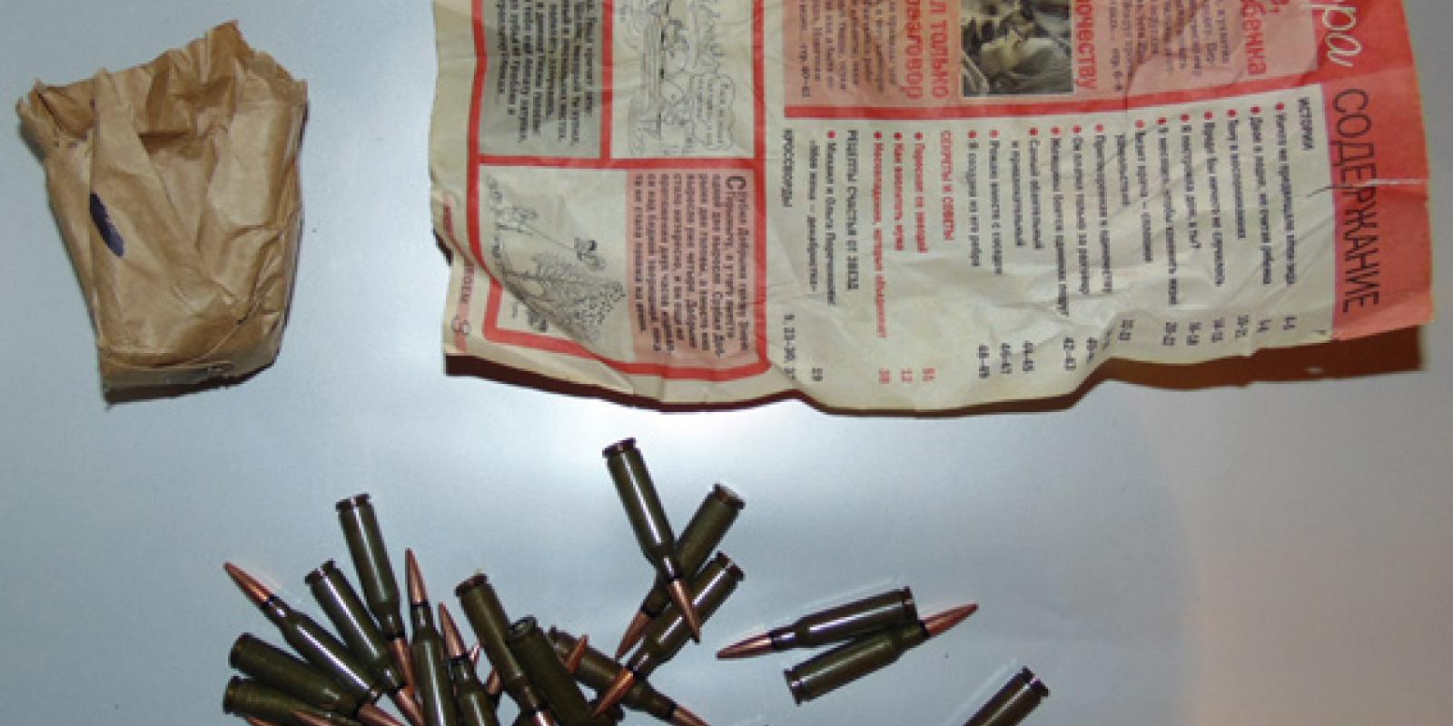 Під час досудового розслідування за фактом грабежів працівники міліції м. Бердичева провели санкціонований обшук у домогосподарстві 40-річного жителя райцентру. Як виявилося, за місцем проживання у клозеті чоловік зберігав набої, завернуті у паперовий згорток.