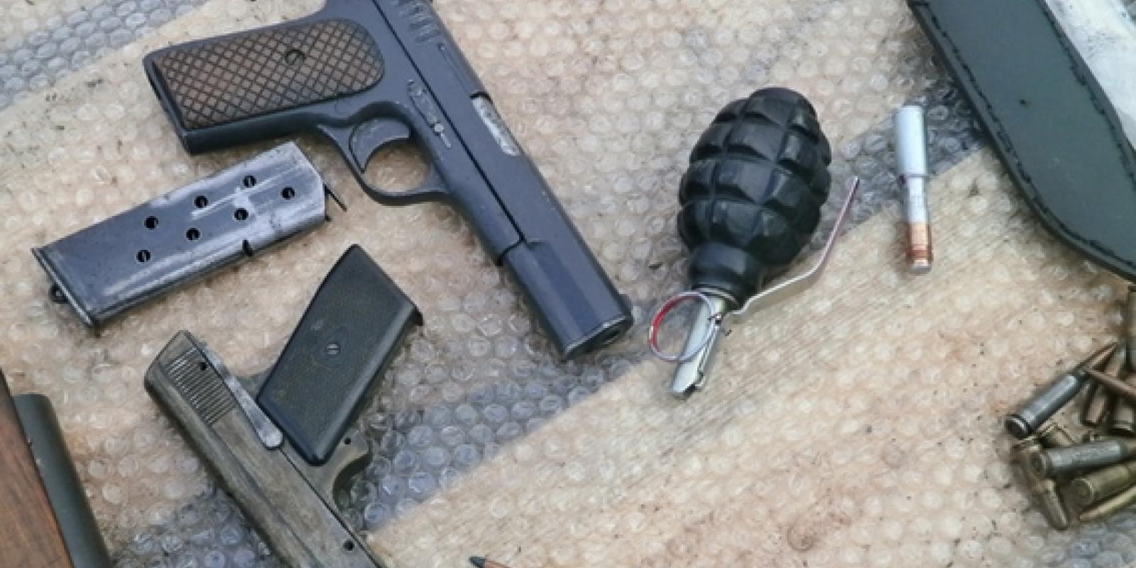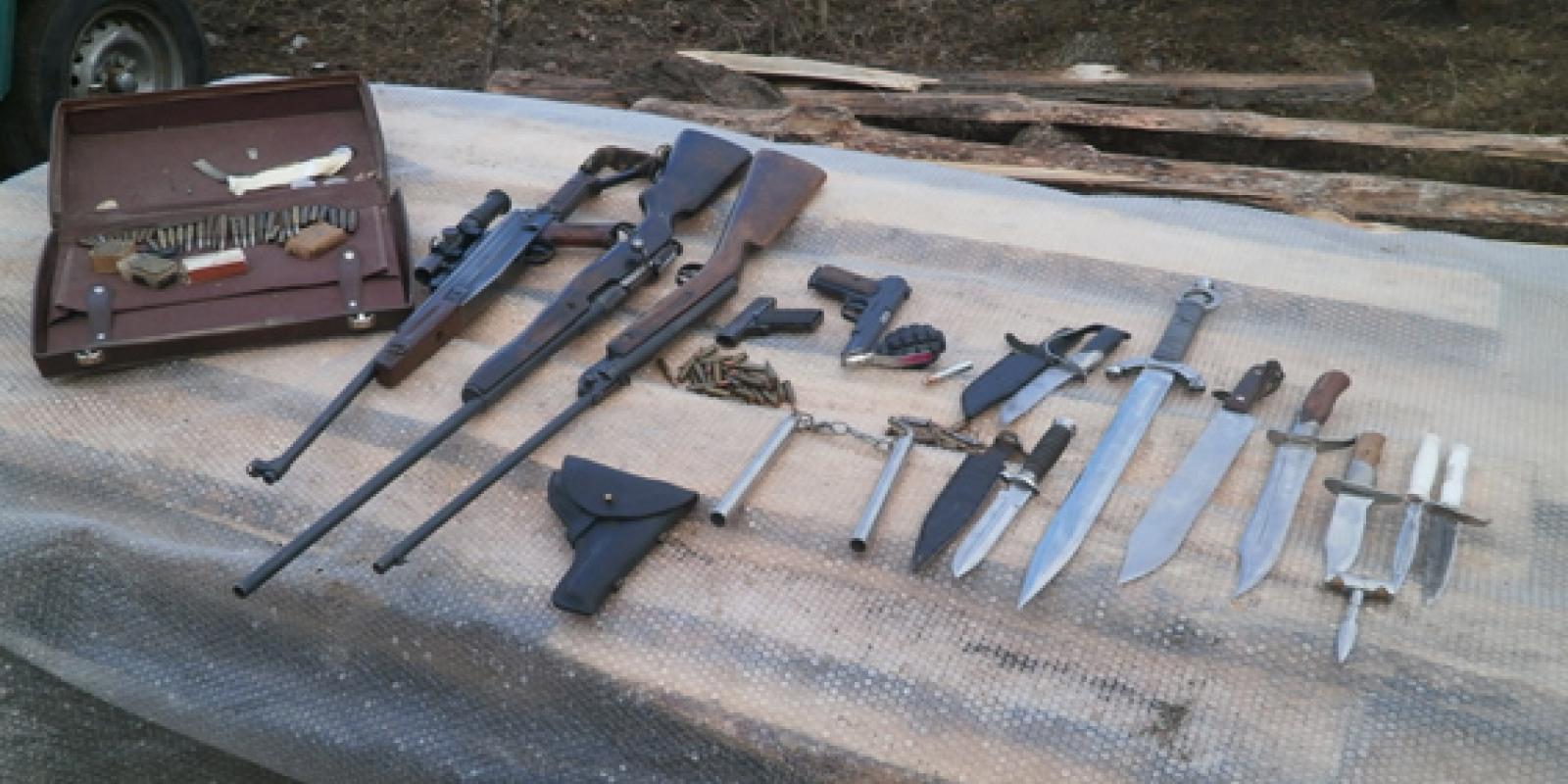 Відтак, у ході обшуку у будинку пенсіонера міліціонери виявили та вилучили пістолет ТТ і стартовий пістолет, 7 саморобних ножів і меч, металеві нунчаки, гранату із запалом і 34 різнокаліберних набоїв до автоматичної зброї.