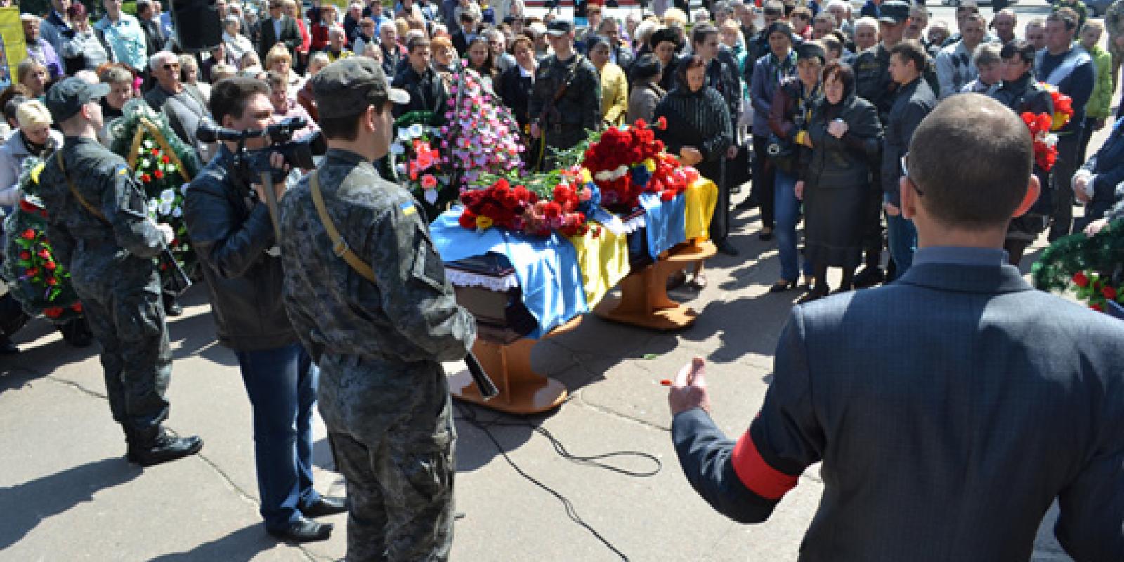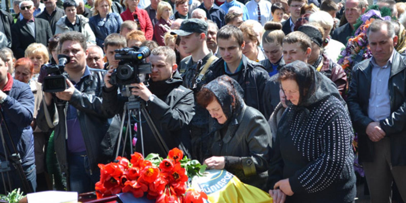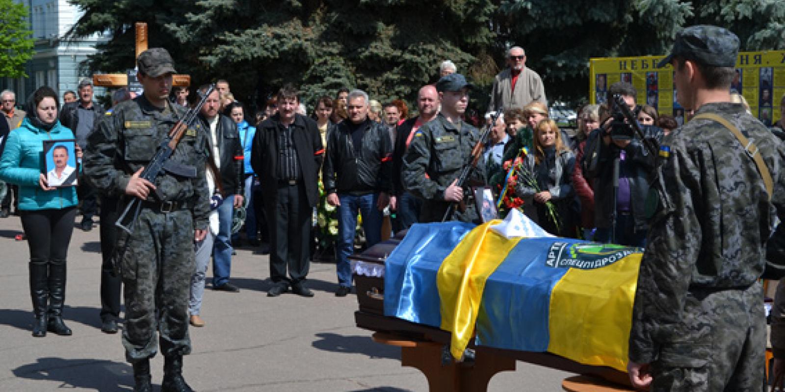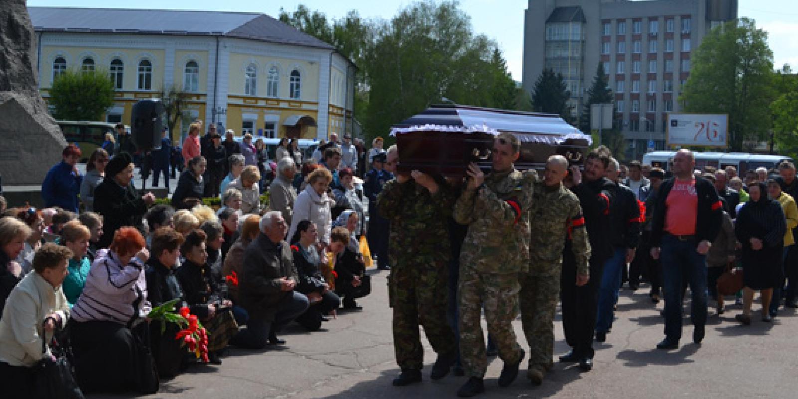 На центральній площі Житомира рідні, близькі, друзі, керівництво області, міста та регіонального УМВС України, а також пересічні житомиряни приклонилися перед загиблим героєм-земляком і урочисто вшанували його світлу пам'ять.