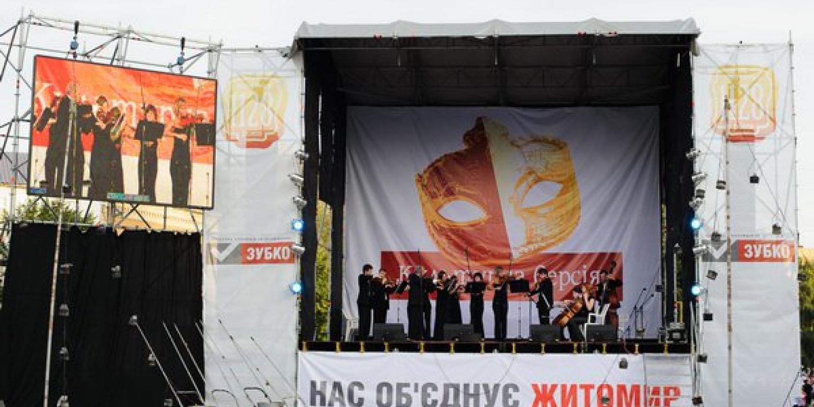 У 2012 році з Днем народження Житомир привітав Львівський академічний театр "Воскресіння", який представив дві вистави: для дітей — "Сон принцеси", для дорослих – "Глорія". Також виступив Львівський камерний оркестр "Віртуози Львова" та артисти Житомирського муздрамтеатру. Завершився вечір вогняним акробатичним видовищем на ходулях "Gefest-show" та салютом.