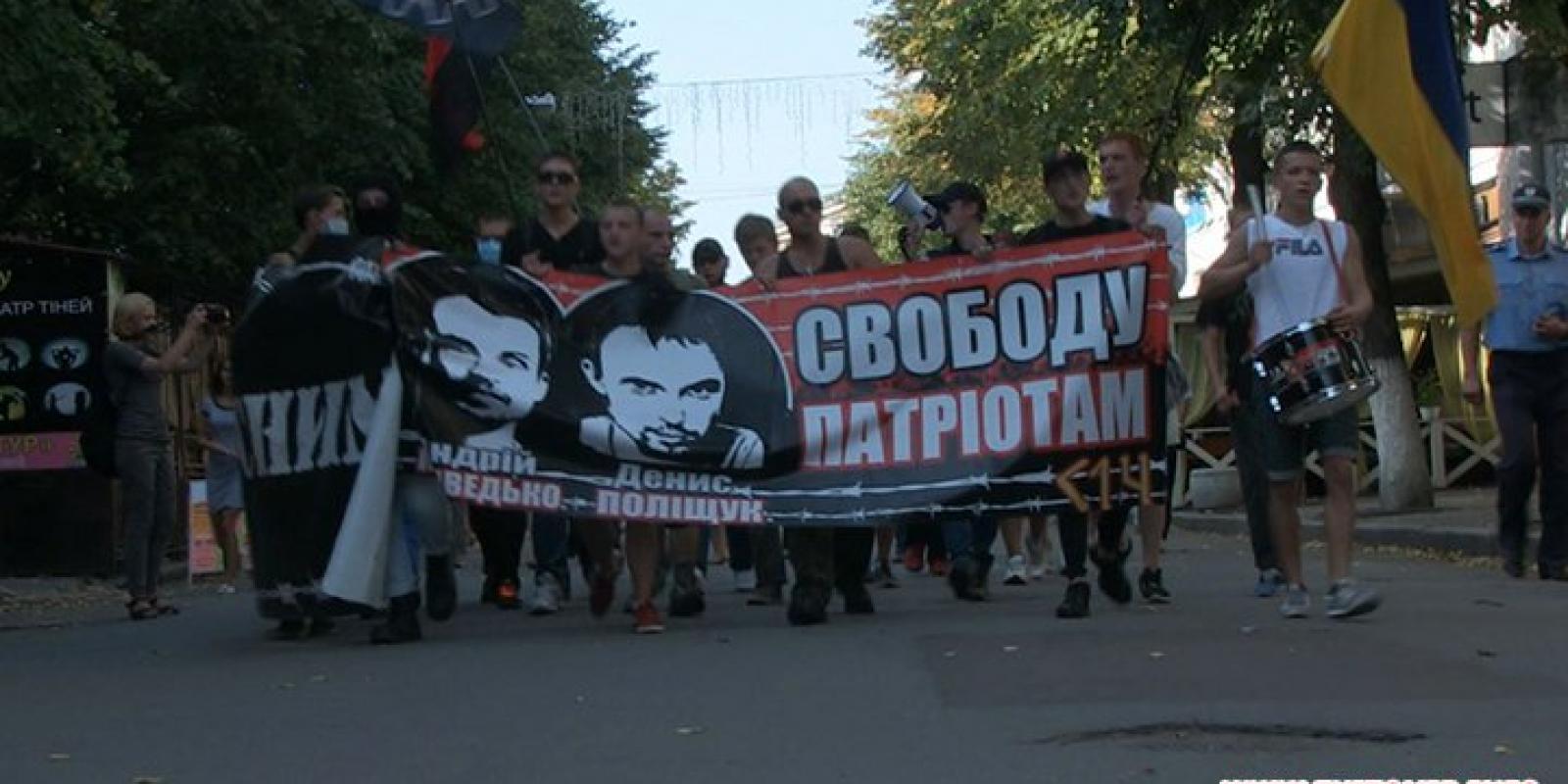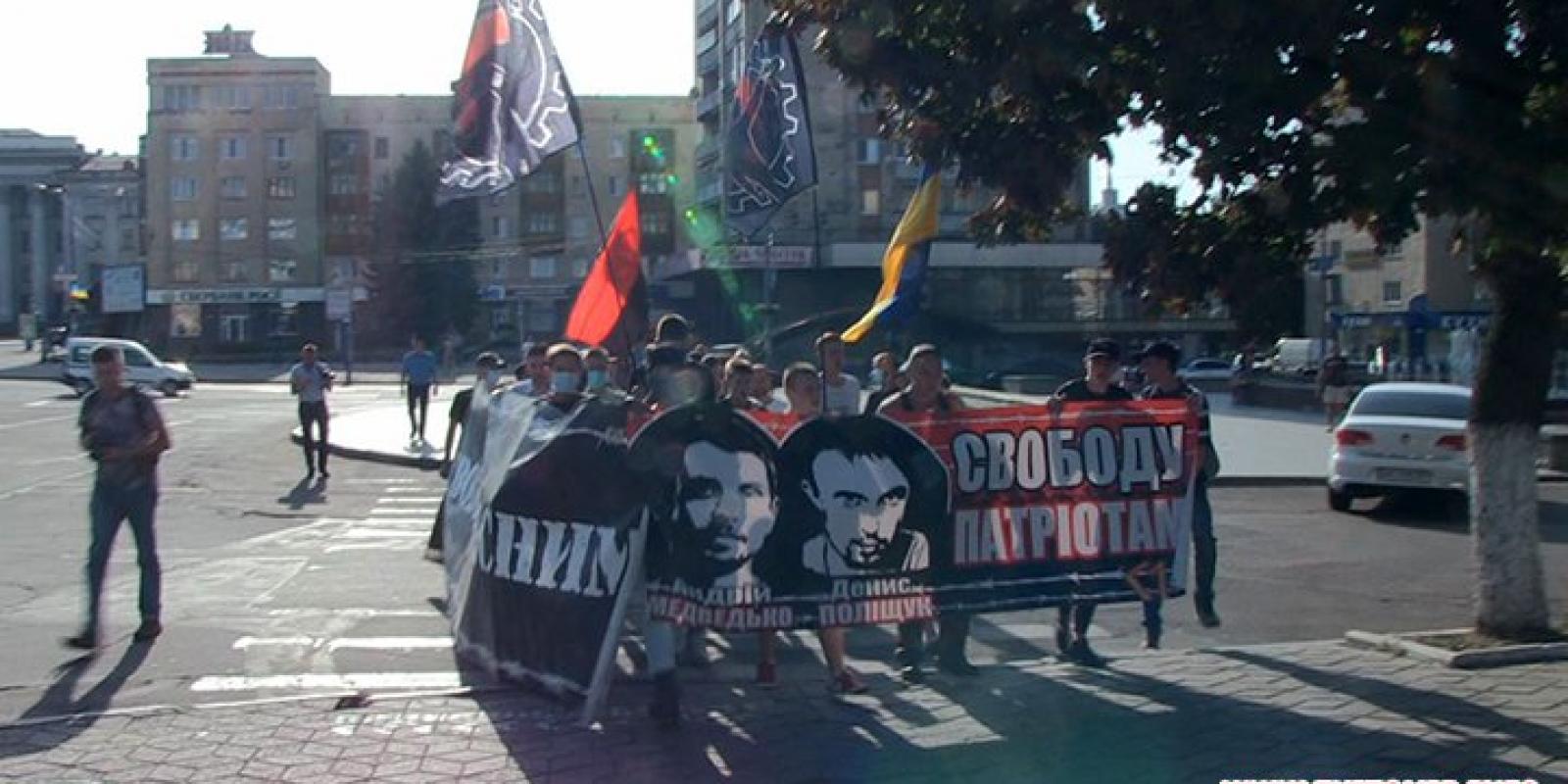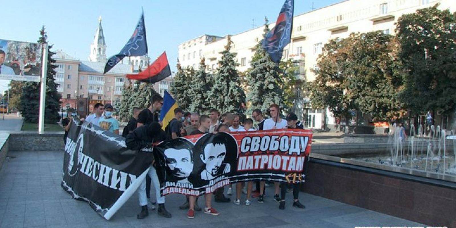 Акція отримала назву "Марш правих сил" і відбулась на підтримку Андрія Медведька та Дениса Поліщука, яких звинувачують у вбивстві Олеся Бузини. О 16:30 від майдану Соборного активісти з плакатами "Свободу патріотам" та "Свободу чесним" рушили вулицею Київською, Михайлівською і через майдан Корольова прийшли до будівлі УМВС. Активісти називають справи Андрія Медведька та Дениса Поліщука сфабрикованими, а затриманих вважають політв’язнями.