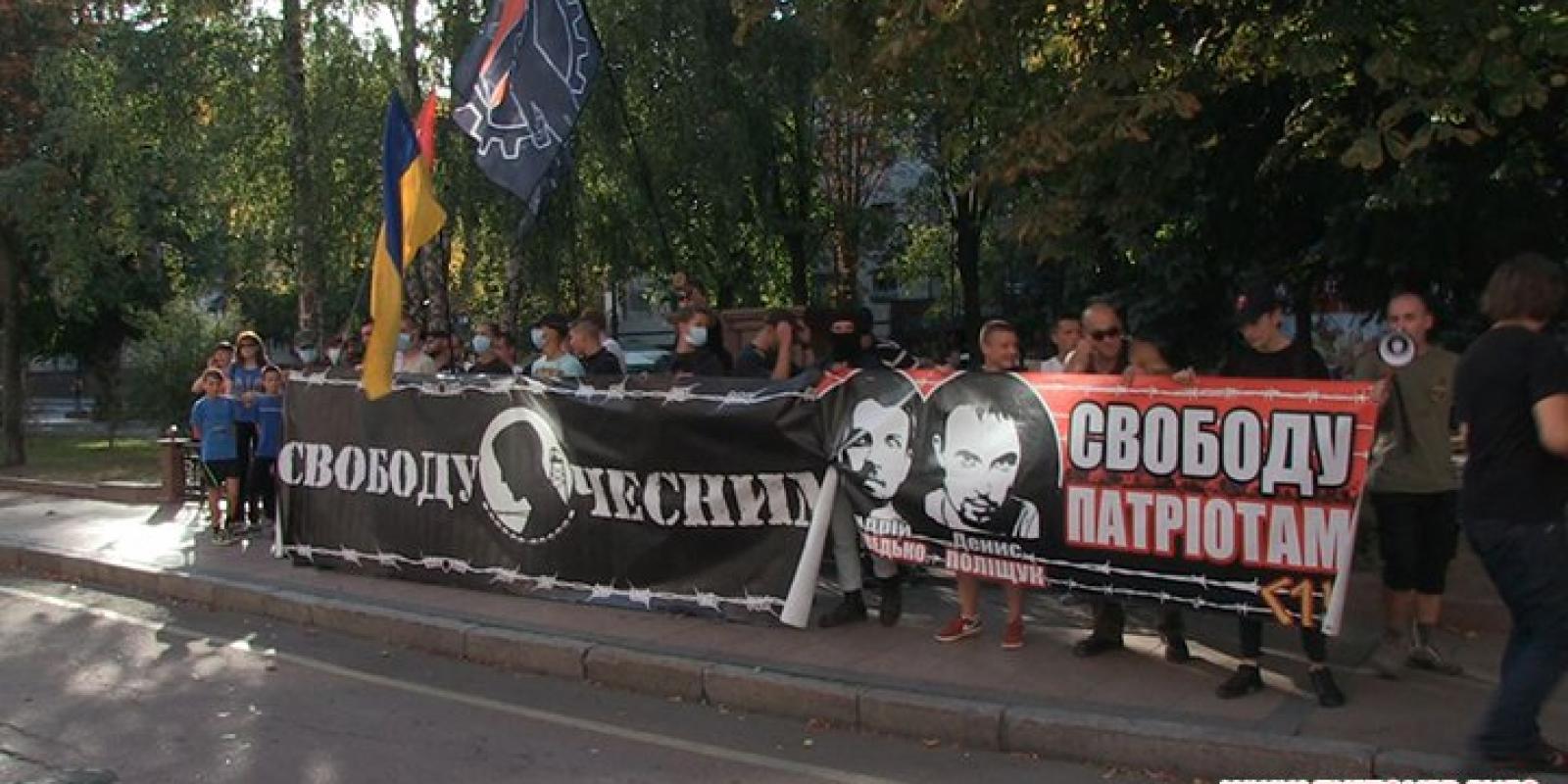 Ще з початку серпня місяця проходять акції "Свободу патріотам" в підтримку саме цих хлопців, Медведька та Поліщука, які заарештовані за, так би мовити, вбивство Бузини. Але ясно, що цією акцією ми маємо на увазі всіх патріотів, яких зараз репресує ця влада. Слава Богу, в Житомирській області зараз ніхто не сидить з наших побратимів за ідейні переконання, але це є в інших областях, і не факт, що завтра нас не будуть так само садити.