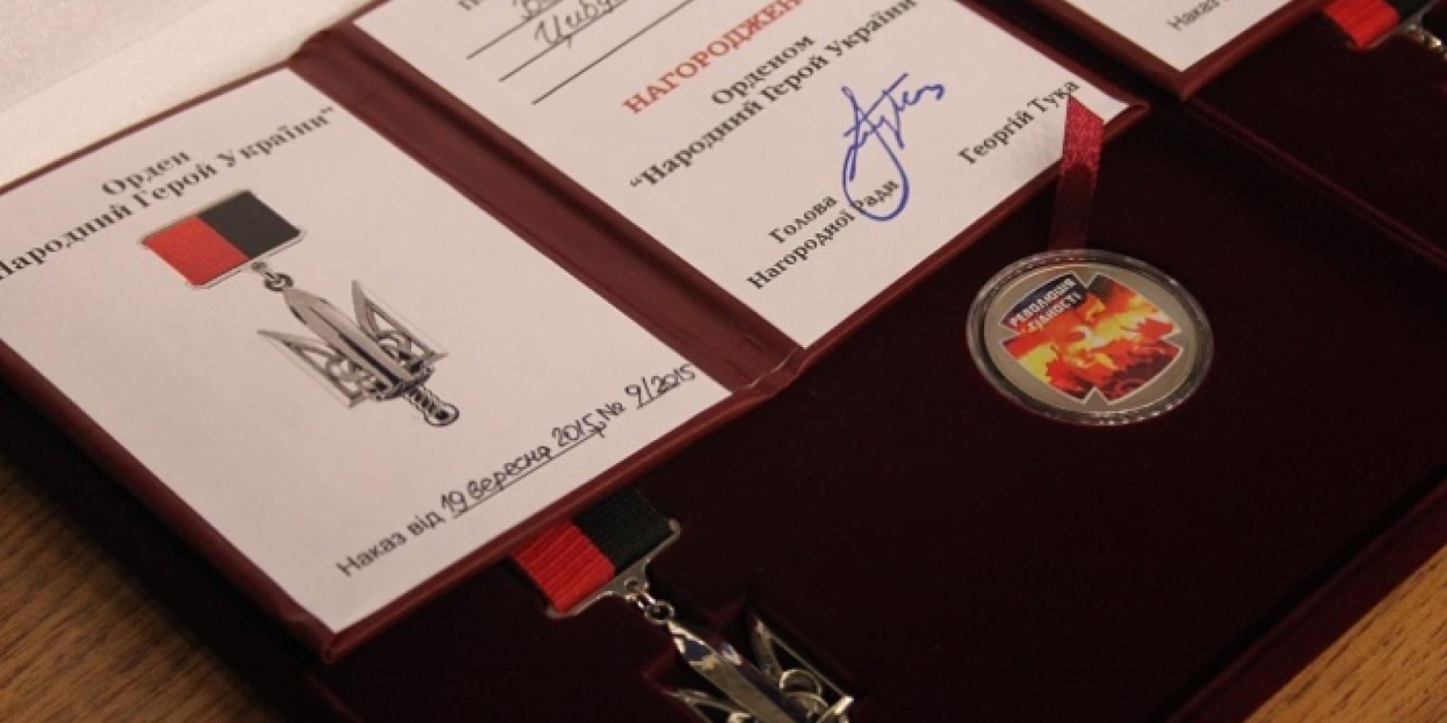 "Народними Героями України" визнано за особисту мужність і героїзм, виявлені у захисті державного суверенітету та територіальної цілісності України, вірність Державі було нагороджено Петра Барбуха (посмертно), Ярослава Антонюка, Ушангі Мамулашвілі, Романа Косенка, Миколу Ніконова, Володимира Цибулю, Михайла Волосюка, Анатолія Козєла, Олександра Абаєва, Сергія Васьківського, Вячеслава Ізотова, Богдана Катану, Євгена Жукова, Валерія Красняна, Андрія Галущенка (посмертно).