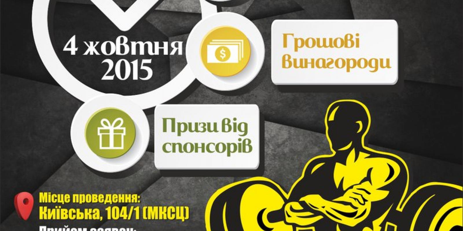 - Дата і місце проведення: Змагання проводиться 4 жовтня 2015р. за адресою: м. Житомир, вул. Київська 104/1 (МКСЦ). Зважування та реєстрація учасників відбуватиметься з 9:00 по 10:30. Початок змагання – 11:00.