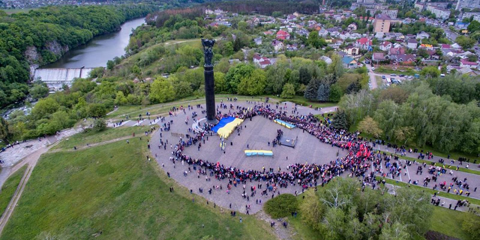 Активіст і фотограф Андрій Морозов опублікував фото мітингу 9 травня згори, з квадрокоптера. На них чітко видно великий державний прапор, хоч і є радянська червона символіка. Її значно менше, ніж в минулі роки, та все ж є люди, які продовжують жити в минулому часі.
