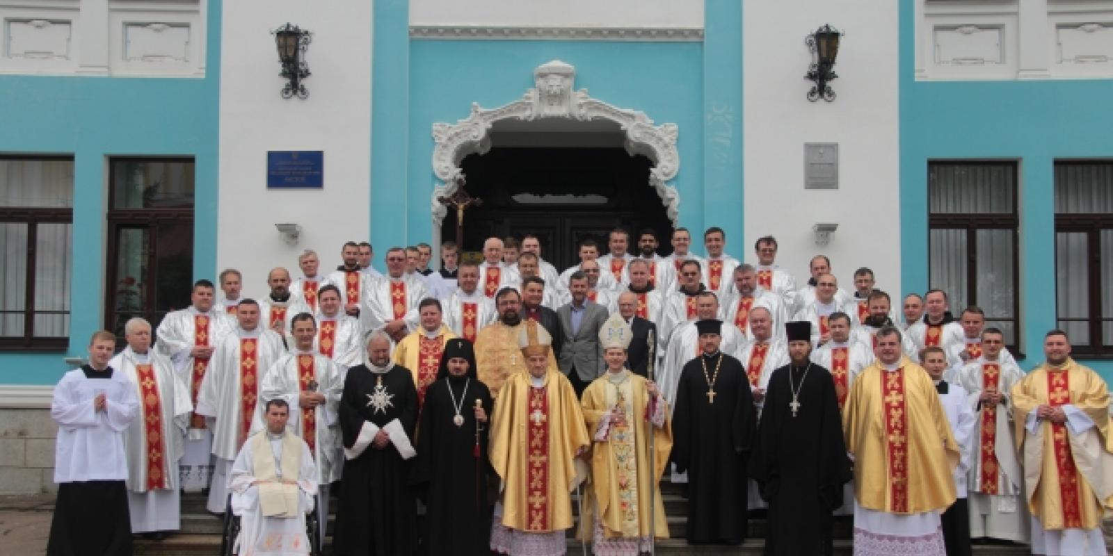 Після Меси, вже традиційно, всі священики зробили спільне фото на сходах єпископської резиденції, котру від часів СРСР займає краєзнавчий музей і не збирається поки віддавати церковне приміщення.