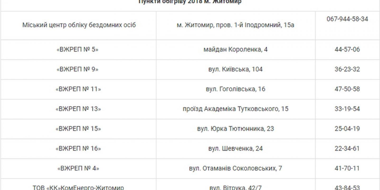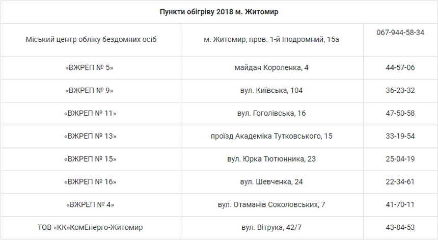 Хоча, як скаржаться керівники житлових контор, минулого року там були такі клієнти, яким потрібен цілодобовий обігрів. Щоправда, таким клієнтам не дуже раді, але вони й не прийшли цього разу. Більшість не знає адрес пунктів, бо немає оголошень по місту, а безхатченки не мають смартфону, але в місті діє міський центр обліку бездомних, де можна раз на день отримати гарячий обід, помитися та переночувати. Такий пункт розташований за адресою: пров. Іподромний, 15а.