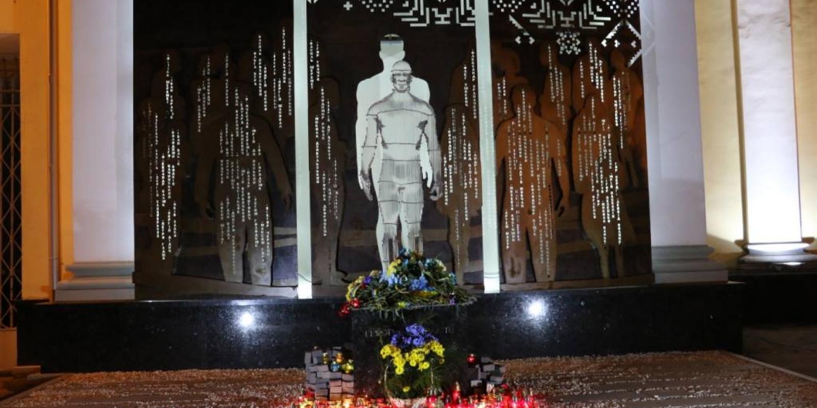 Хвилиною мовчання громада вшанувала усіх Героїв, які поклали своє життя за Незалежність та Соборність Української держави. Після того житомиряни поклали квіти та поставили запалені лампади до пам’ятника Героям Небесної сотні.