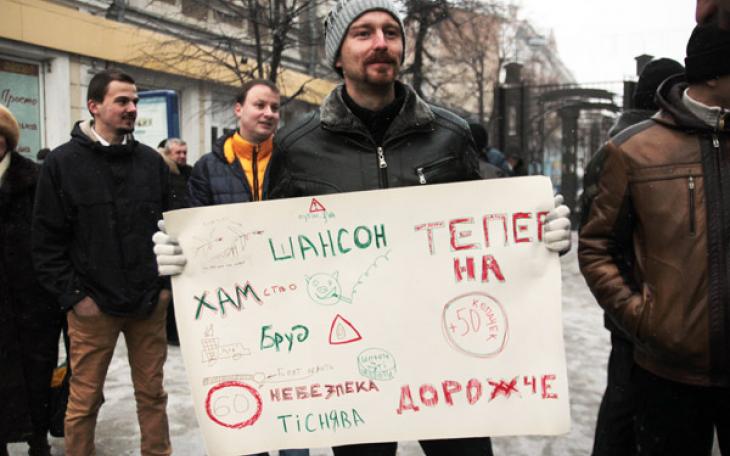 Під Житомирською мерією кілька десятків людей протестують проти підвищення вартості проїзду (Фото) + (Відео) Читати далі